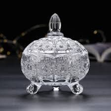 وعاء تقديم سكر من الزجاج الشفاف مع غطاء.