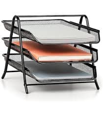 منظم مستندات معدني بـ 3 طوابق بتصميم شبكي أسود.