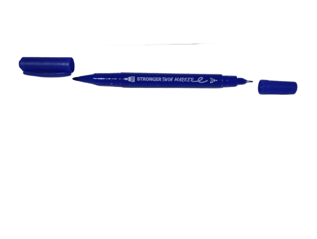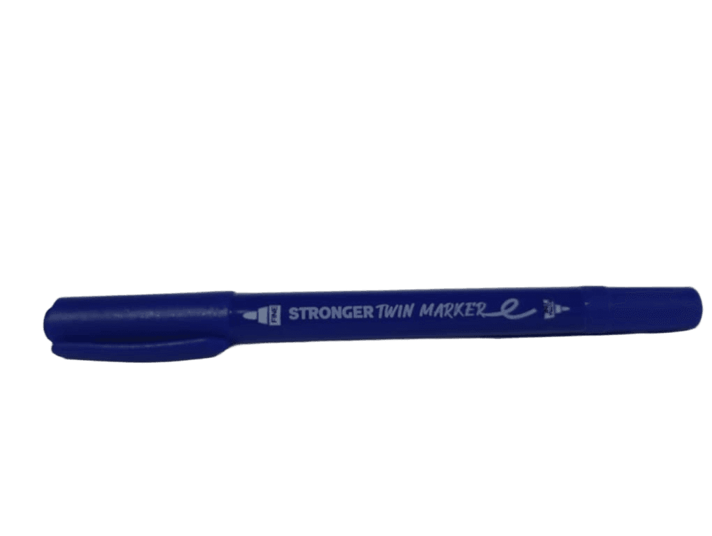 قلم كتابة دائم (Permanent) ذو رأسين مختلفين للكتابة على الأسطح الناعمة.
