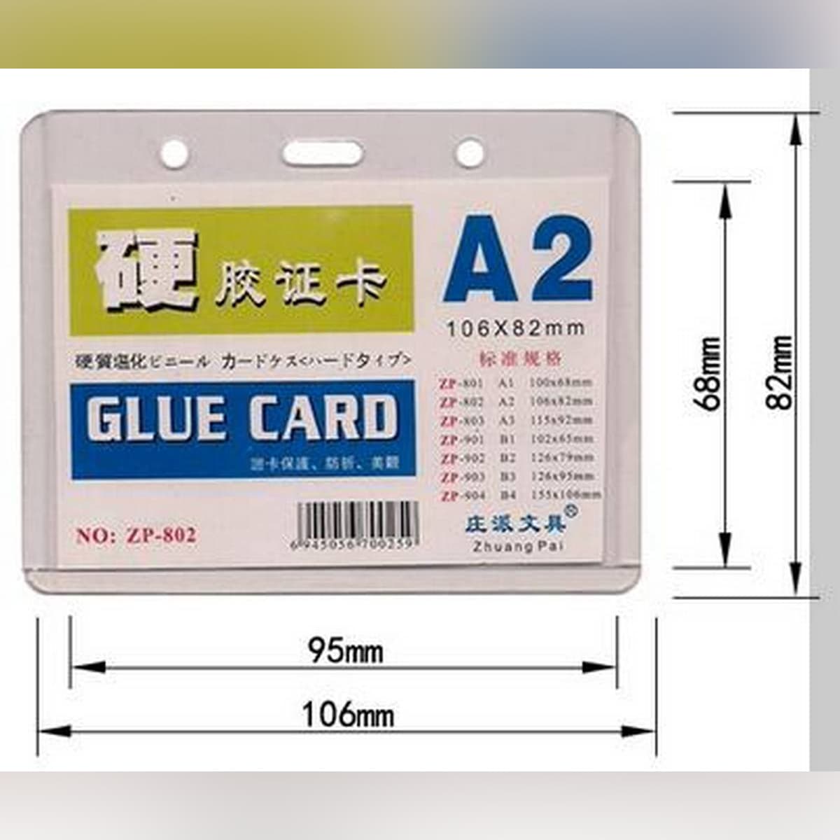 حافظة بطاقة تعريفية بلاستيكية بتصميم عرضي مقاس 106×82 مم.