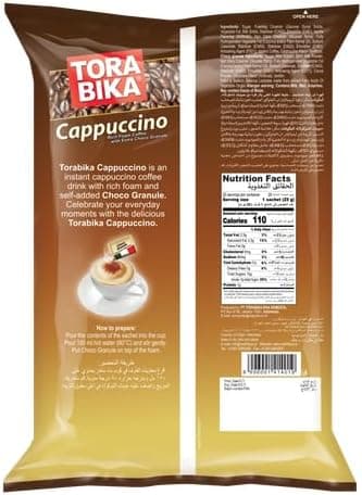 كابتشينو "تورا بيكا" سريع التحضير مع كيس شوكولاتة إضافي.