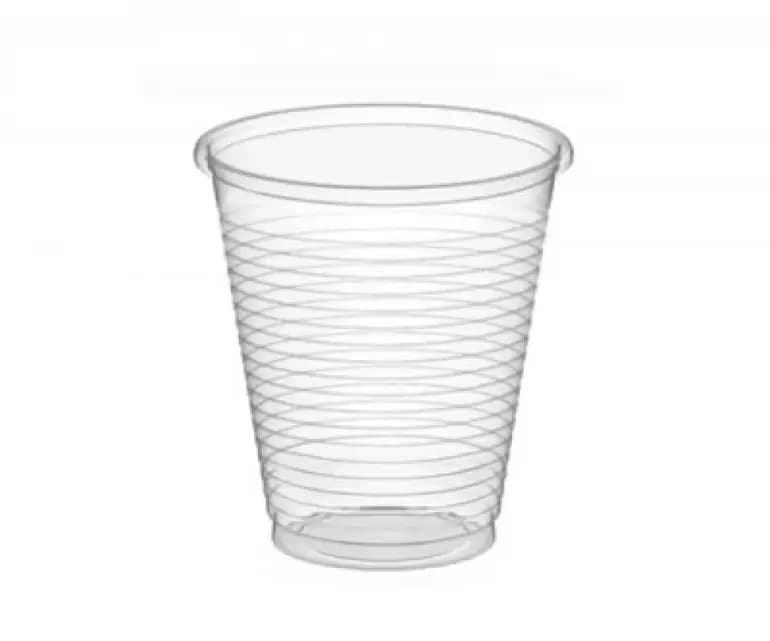 أكواب بلاستيكية شفافة للاستخدام لمرة واحدة.