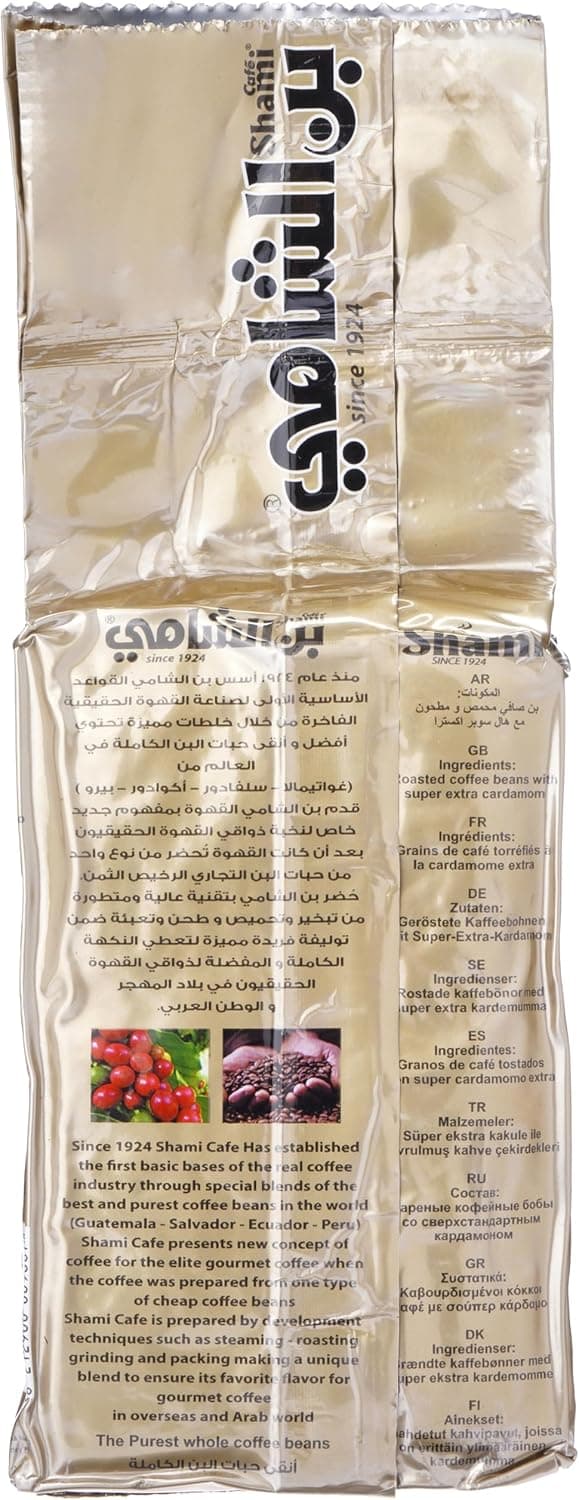 A luxury blend from Al-Shami coffee, featuring a special golden roast that highlights the coffee bean's sweetness, ground with first-class cardamom for an exceptional experience.