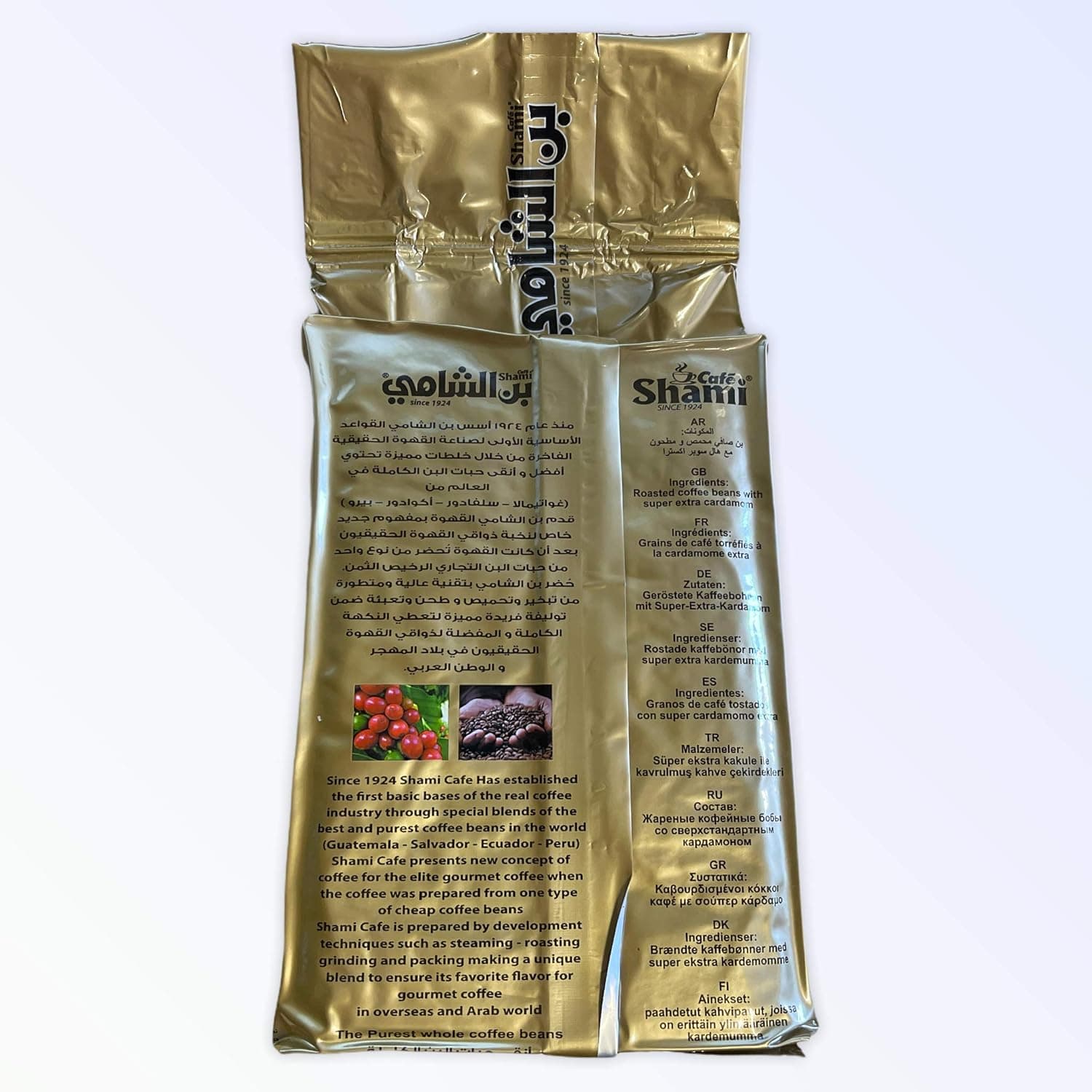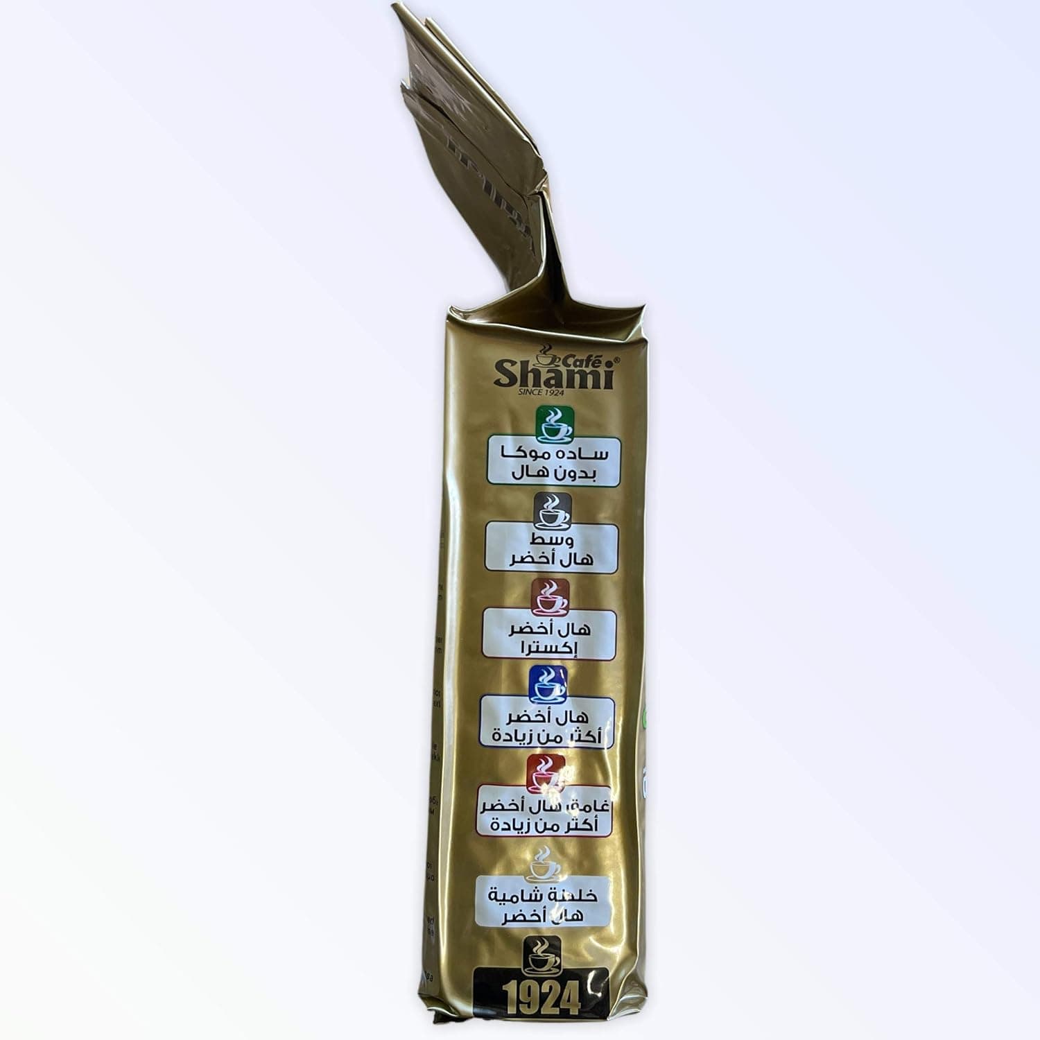 A luxury and distinct blend from Al-Shami coffee, carefully roasted to a medium golden degree. Features a fragrant cardamom aroma and perfect balance, finely ground to suit high-end Turkish coffee.