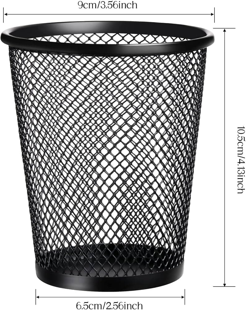 Round black metal mesh pen holder.